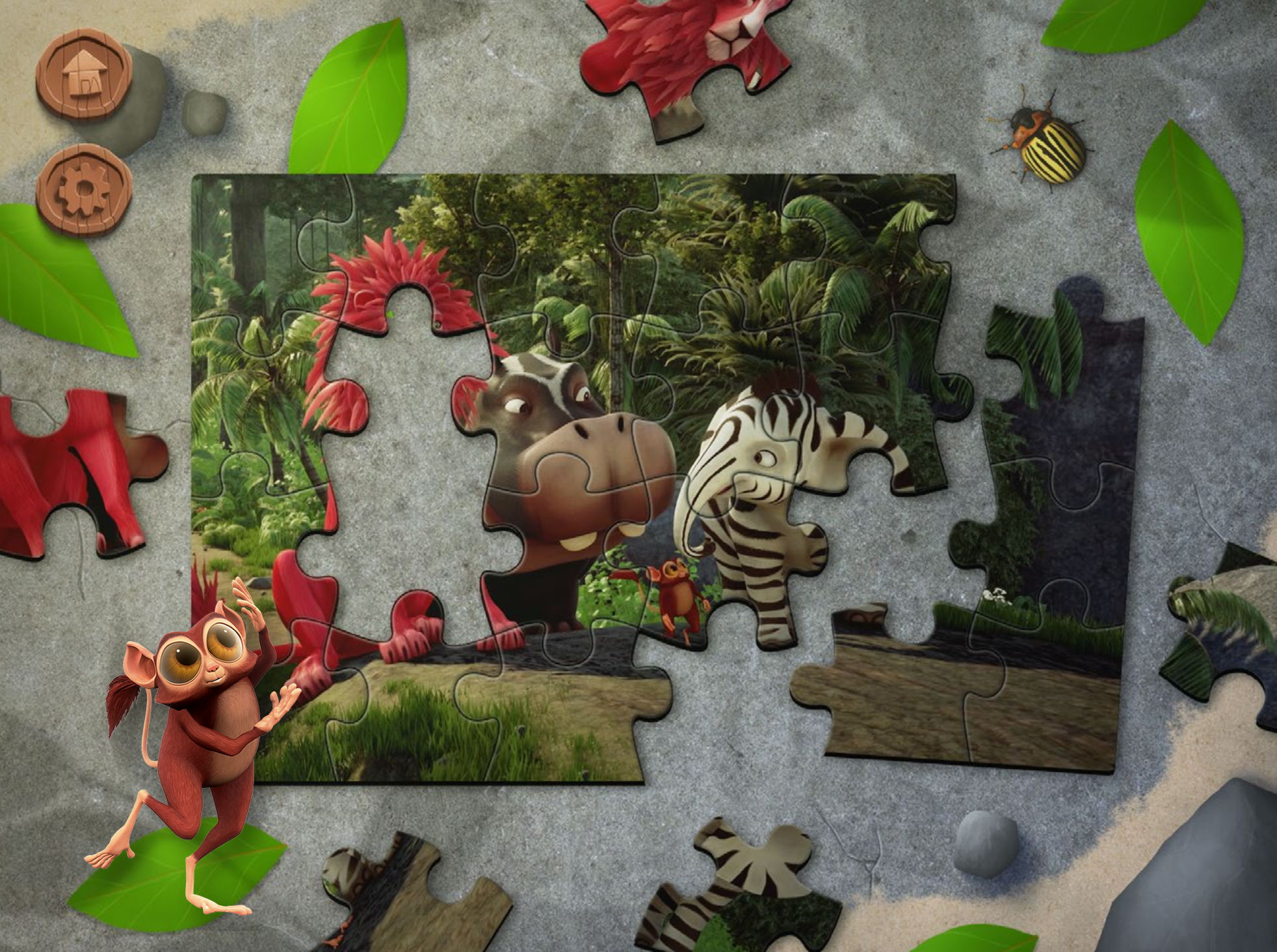 Piece together rich ZAFARI scenes from a pool of 356 illustrations. Three difficulty stacks — 10, 30, and 80 pieces — and a fresh scene every round.