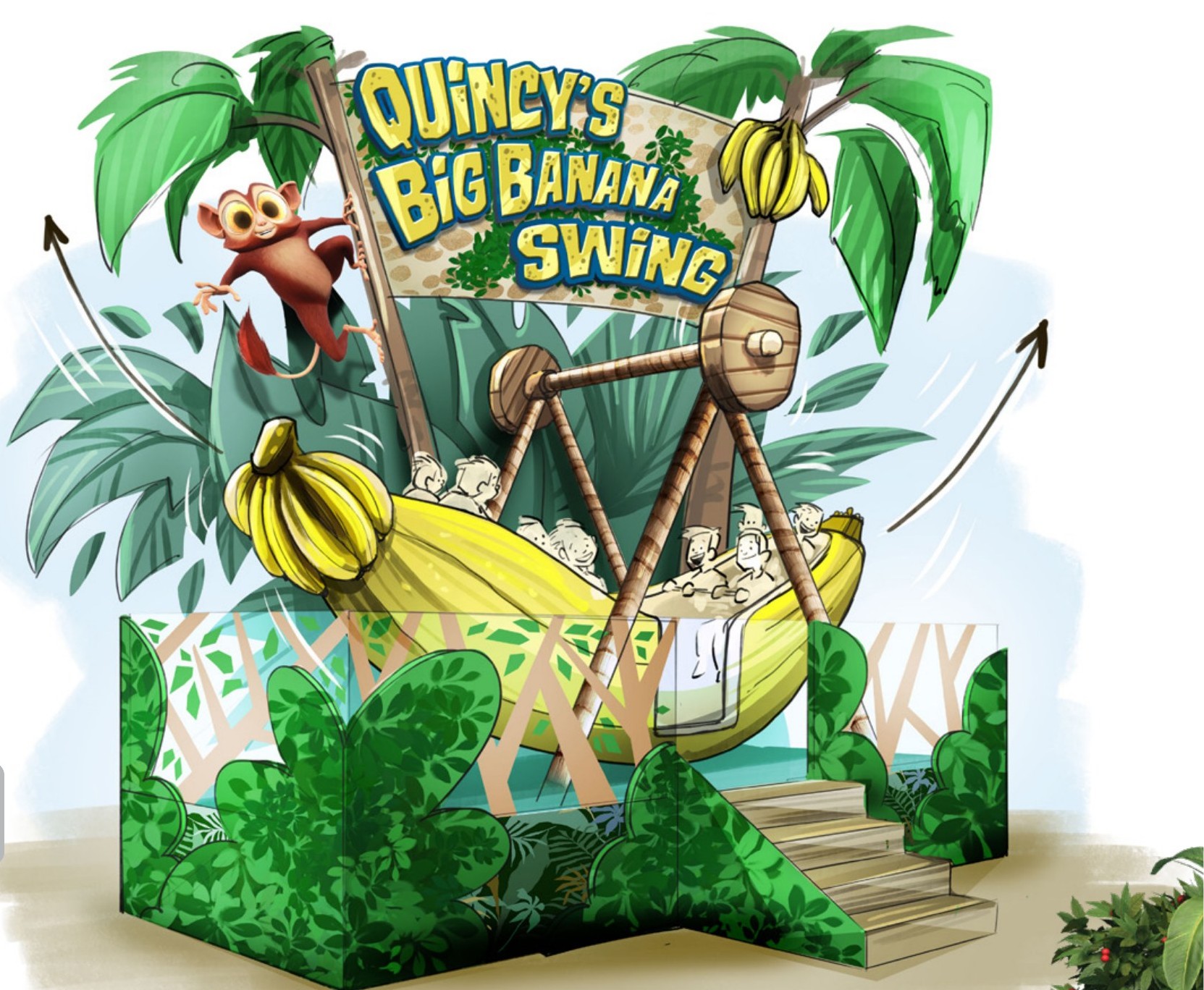 Hold on tight and soar into the jungle canopy on a giant banana boat — Quincy is absolutely delighted about this, even if you're not. This classic swinging boat ride is themed around the world's greatest monkey and his obsession with bananas. Suitable for all ages and wildly popular with everyone who dares to climb aboard.