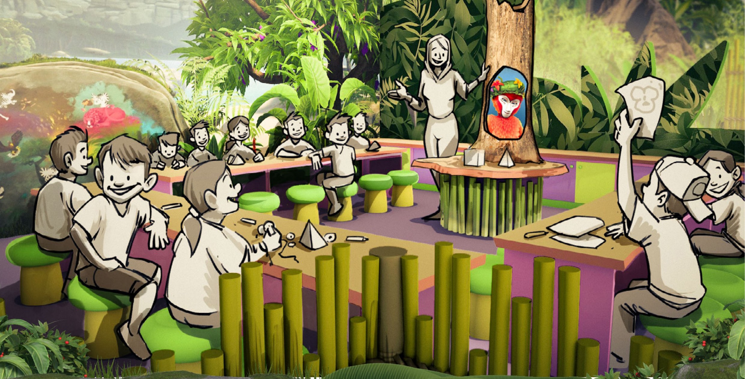Colette hosts live crafting sessions in her own workshop at the heart of the park — friendship bracelets, butterfly puppets, jungle headdresses, and seasonal specials throughout the year. Every child leaves with something they made themselves and a memory of meeting Colette in person.