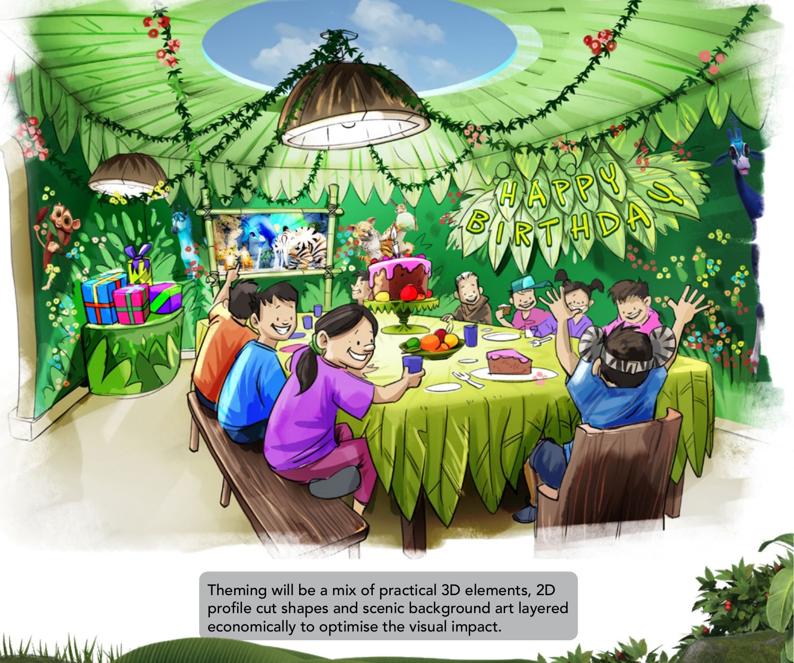 Private themed party rooms for birthdays and celebrations — personalised character video greetings, ZAFARI cakes, party bags packed with surprises, and unlimited park access for the guest of honour and their crew. The best birthday a kid could ask for.