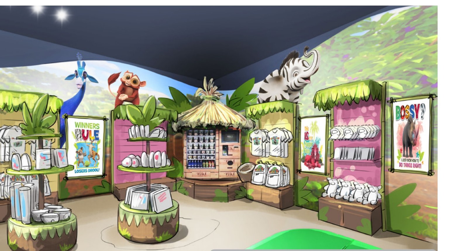 End every adventure at the ZAFARI Store — plushies of every character, puzzles, apparel, books, exclusive park souvenirs and things you won't find anywhere else. Bring a bit of the jungle home with you.
